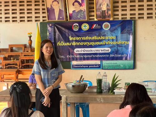 วันพฤหัสบดี ที่ 13 กุมภาพันธ์ พ.ศ. 2568 นางพวงผกา ไชยเกล้า พัฒนาการอำเภอคลองหาด มอบหมาย เจ้าหน้าที่สำนักงานพัฒนาชุมชน จัดกิจกรรมภายใต้โครงการส่งเสริมประชาชนเป้าหมายเข้าถึงแหล่งทุน เพื่อสนับสนุนการพัฒนาเศรษฐกิจฐานราก และยกระดับคุณภาพชีวิตของประชาชนในพื้นที่