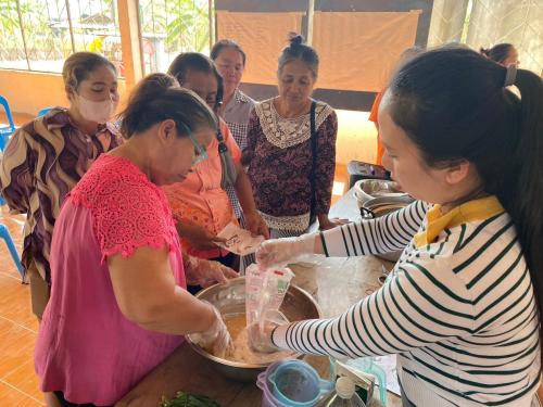 กิจกรรมครั้งนี้มุ่งเน้นการส่งเสริมความรู้และทักษะที่ตอบสนองต่อความต้องการของตลาดและศักยภาพของชุมชน โดยกลุ่มเป้าหมายได้ร่วมปรึกษาและลงมติในที่ประชุม เลือกอาชีพการทำขนมเปียกปูนใบเตยดอกไม้ เป็นแนวทางการพัฒนารายได้ของกลุ่ม