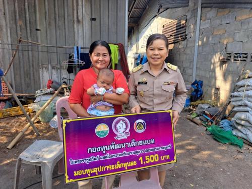 วันพฤหัสบดี ที่ 20 กุมภาพันธ์ พ.ศ. 2568 เวลา 13.30 น. นางพวงผกา ไชยเกล้า พัฒนาการอำเภอคลองหาด พร้อมด้วย เจ้าหน้าที่สำนักงานสำนักงานพัฒนาชุมชน มอบทุนอุปการะเด็ก กองทุนพัฒนาเด็กชนบทในพระราชูปถัมภ์ สมเด็จพระเทพรัตนราชสุดาฯ สยามบรมราชกุมารี ประจำปี 2568 เพื่อเป็นทุนให้ความช่วยเหลือ สนับสนุนและพัฒนาเด็กก่อนวัยเรียนอายุตั้งแต่แรกเกิด ถึง 6 ปี ที่ครอบครัวยากจน และด้อยโอกาส จำนวน 1 ทุน ได้แก่ เด็กชายธีรกร ยอดทอง อายุ 3 เดือน โดยมีนางอภิญญา บุญชม ผู้ใหญ่บ้าน ช่วยอำนวยความสะดวก ณ บ้านเทพนิมิตร หมู่ที่ 11 ตำบลซับมะกรูด อำเภอคลองหาด จังหวัดสระแก้ว